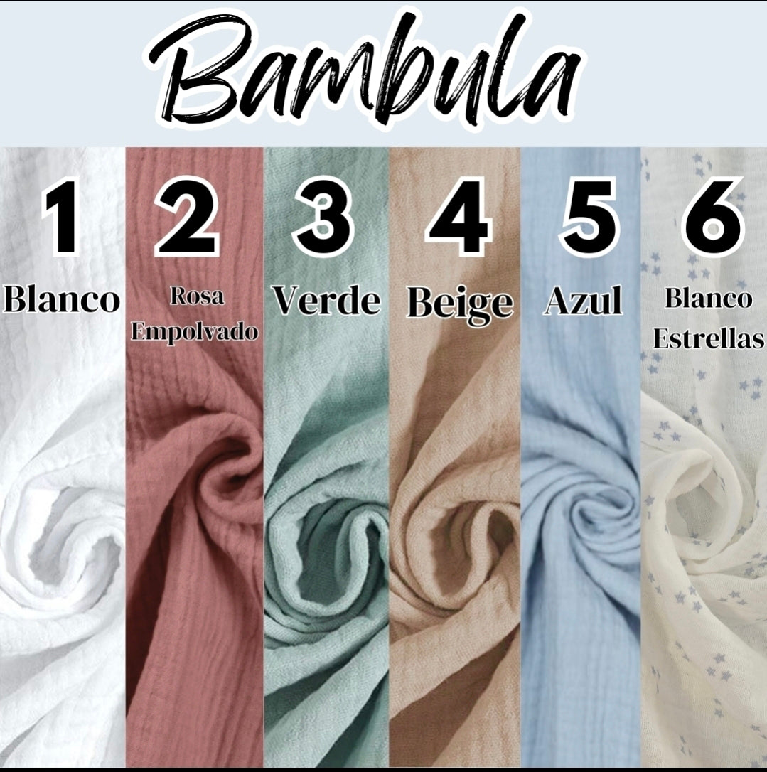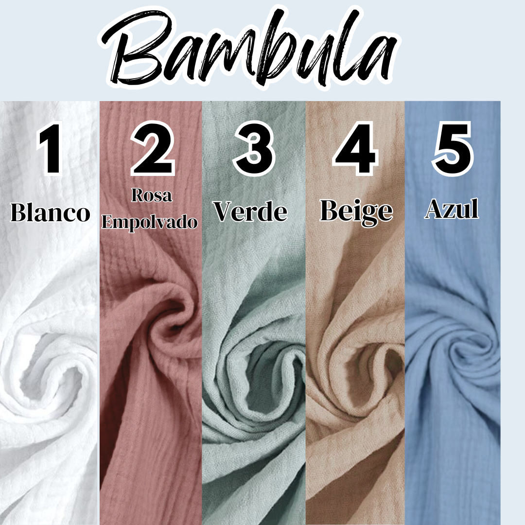La bambula es como un susurro de suavidad y ligereza para la piel sensible de tu bebé. Con su textura delicada y aireada, esta tela transmite una sensación de frescura y comodidad, perfecta para acompañar los momentos más dulces y tranquilos del día a día.