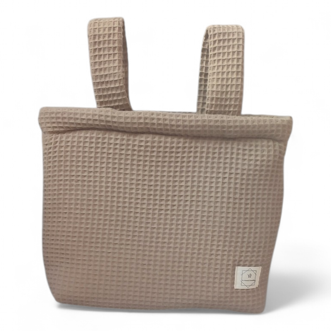 El bolso cuenta con dos prácticas asas con cierre de botón para fijarse de manera cómoda a la silla o carrito, cierre mediante velcro o cremallera y un acolchado adicional para mayor comodidad.